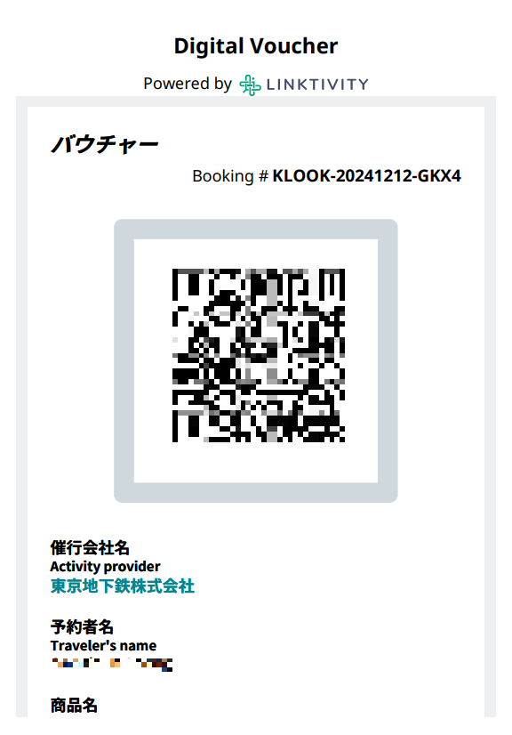 결제를 완료하시면 메일로 바우처가 도착하고, 바우처에는 큐알코드와 이름 등 정보가 들어가요.