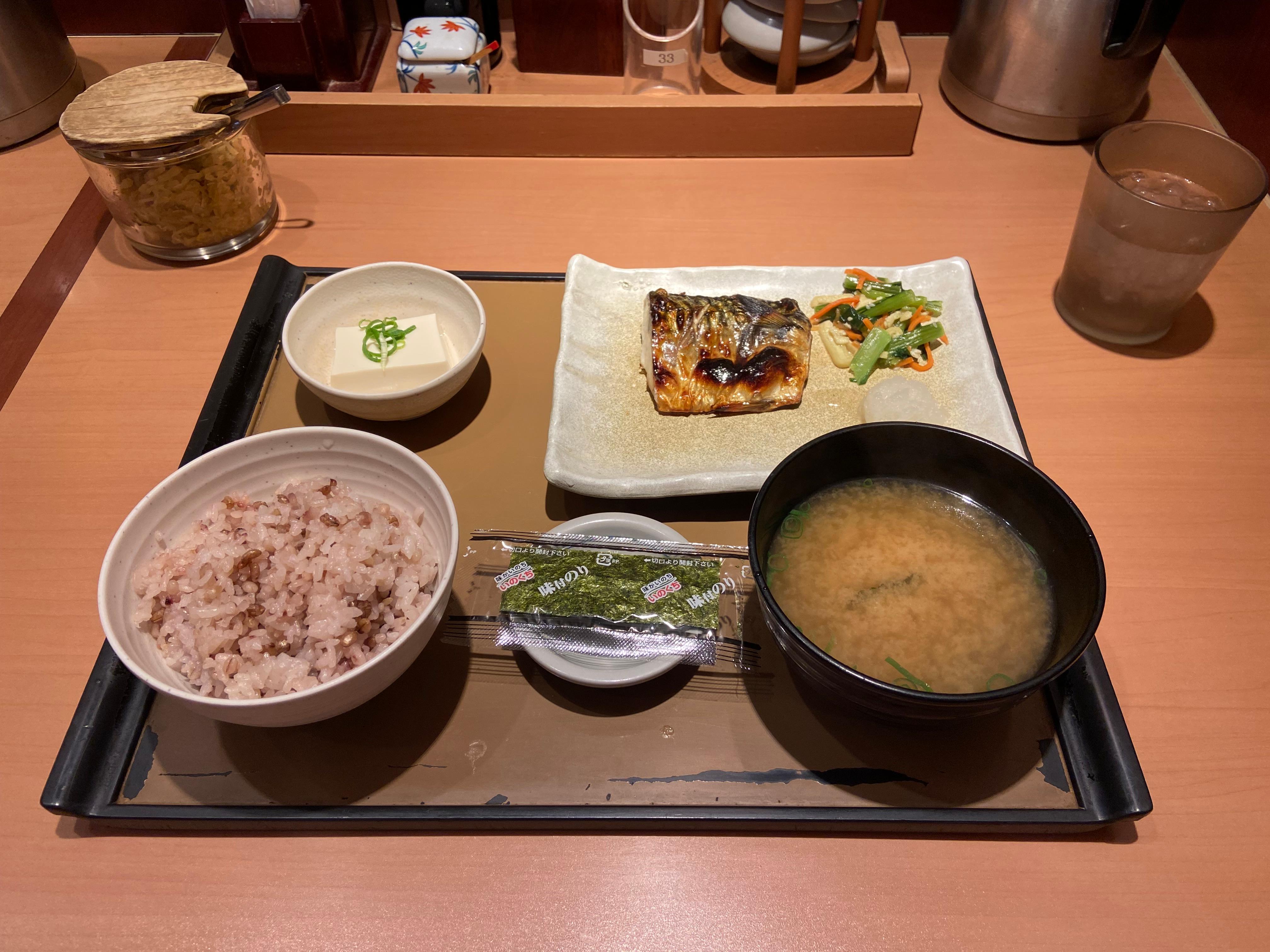 저는 고등어가 있는 메뉴로 선택했어요. 평소 생선을 먹을 일이 많이 없기도 하고, 일본 애니에서 생선을 많이 먹더라구요? 궁금했어요 🙂 가격은 540엔이었어요. 약 오천원 안 되는 가격에 든든한 한 끼를 먹을 수 있다는 점에서 가성비가 괜찮은 것 같아요.