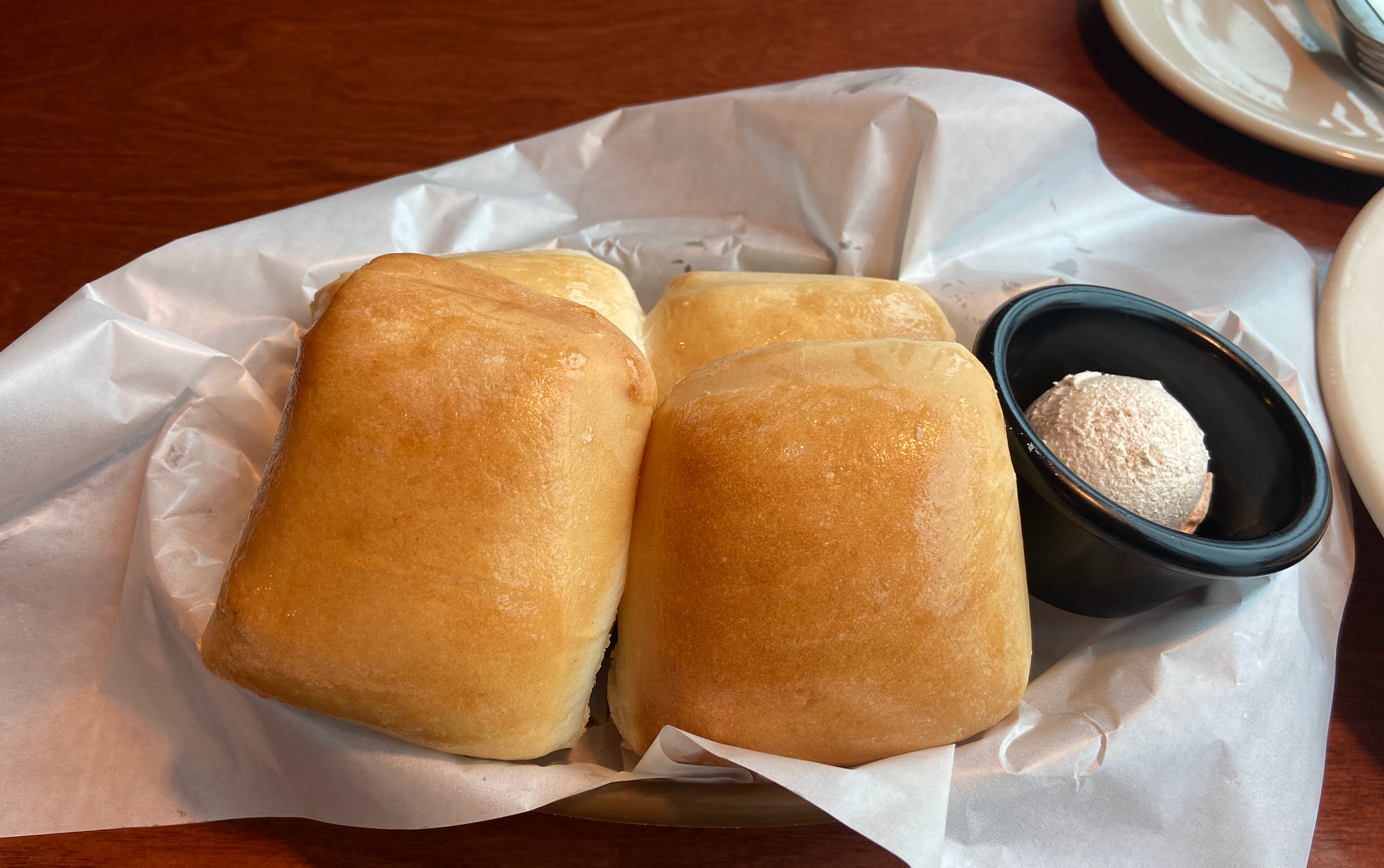 기본으로 내어주시는 식전 빵이에요. 은은한 단맛과 부드러움, 고소함이 가득해요. 빵은 씹는 식감보다는 부드러움이 커요! 빵 자체로도 고소하고 달달하고, 옆에는 땅콩맛이 느껴지는 버터? 크림?인데 듬뿍 찍어먹으면 더 고소하고 맛있어요 :) 제 기준 아웃백 부시맨보다 훨~~ 씬 맛있는 것 같아요!