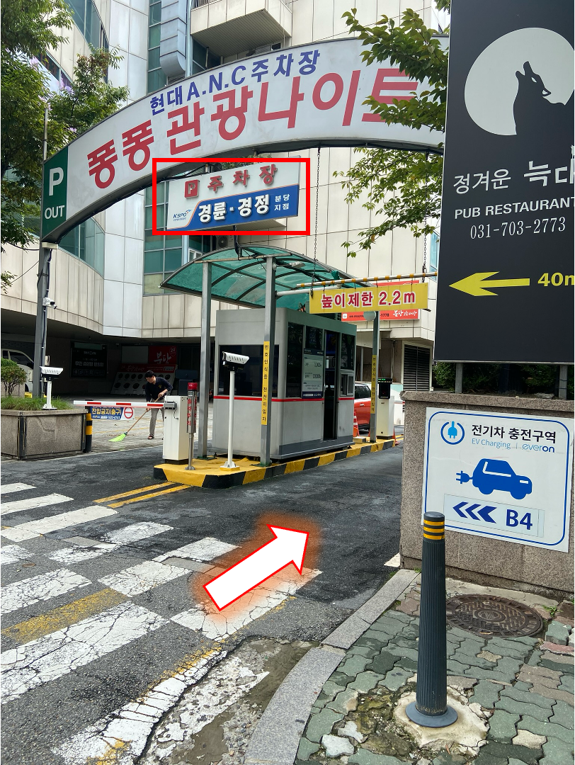 식당이 관광나이트랑 콕 붙어 있어서, 지난 번에는 미처 못 보고 지나갔던 것 같아요. 주차장도 너무 대문짝만하게 관광나이트라.. 전혀 주차장 입구라고는 생각지도 못한 곳이 주차장 입구였어요.